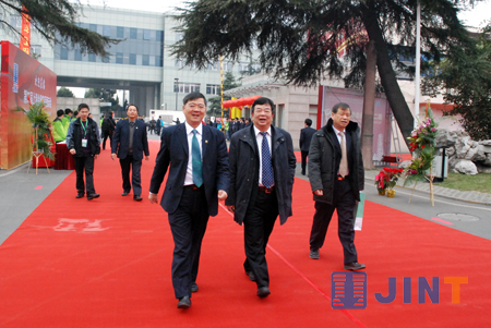 12月20日清晨,上海金泰厂区锣鼓喧天,彩旗飘扬,空气礼炮声此起彼伏,处处洋溢着一派节日的喜庆。“90华诞”的巨型标志矗立在工厂大门,醒目而热烈;红地毯铺就的“星光大道”从工厂大门一直延伸至产品展示区,在道路两旁形似“风帆”的广告旗衬托下,显得隆重而活泼;公司礼堂装饰一新,灯光、音响和多媒体设备渲染出主题会场祥和、欢快的氛围……