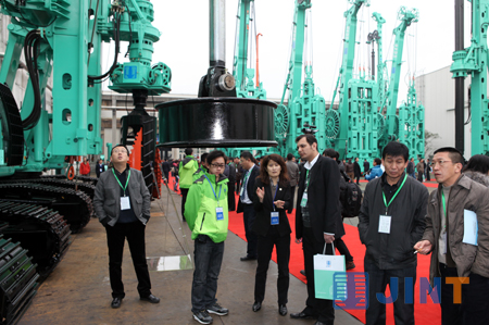 展示会集中展示了上海金泰近年来研发和生产的适合各种复杂地质条件施工的桩工机械产品30余台(套),其中SX30轻型双轮铣、SE30旋挖钻机、SD20C多功能钻机、超深液压挤压钻具、液压挤扩钻具、导杆式抓斗等新产品和钻具首次对外公开亮相。在展示现场,参会代表对金泰各系列产品表现出浓厚的兴趣,或驻足观摩机械师的操作演示,或详细了解技术人员对产品性能和各技术参数的介绍,或三五成群与公司营销人员一起讨论经销合作细节……