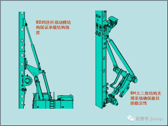 7)在原有SD32基础上,对四连杆结构及油缸液压系统的设计进行了全面升级,油缸起塔能力大幅度提升;