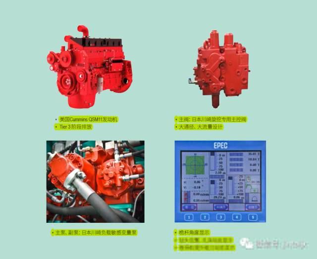 1)新一代旋挖专用底盘:发动机功率为299kw(欧Ⅲ标准);下底盘加宽、重量加大、重心更低,保证入岩钻进时机身的稳定;