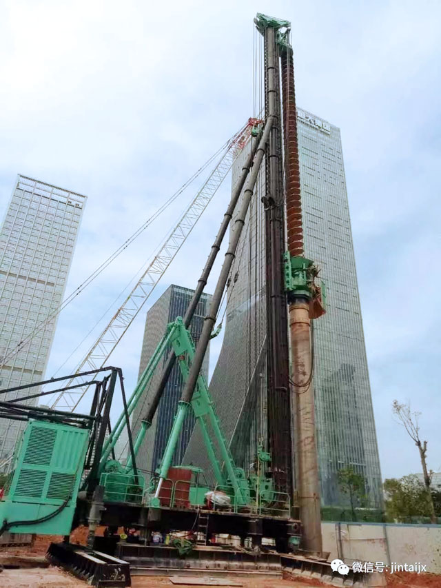日前,一台上海金泰SZ80-35全套管钻机现身由中建三局承建的深圳工商银行大厦桩基工程现场,这台全新的SZ8-35全套管钻机开始首次尝试以“咬合桩”工艺进行基坑围护施工。
