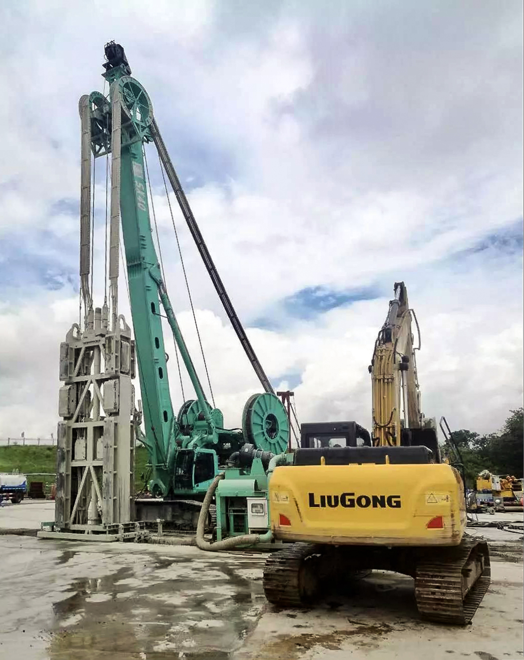 日前,工程承建单位广西路桥集团、施工单位广东深大基础公司以及设备供商上海金泰三方领导亲临施工现场视察。广东深大基础公司的李总对金泰SX40双轮铣的稳定性和施工效率给予了高度的评价:“金泰的双轮铣为我们的施工进度提供了有力的保障,从5月初正式开工至今,设备已运行了近1600小时,没有发生任何故障,至今已顺利完成了80%的工程,而且维护成本相当低,金泰的双轮铣高效稳定,能力强劲,不负使命!”