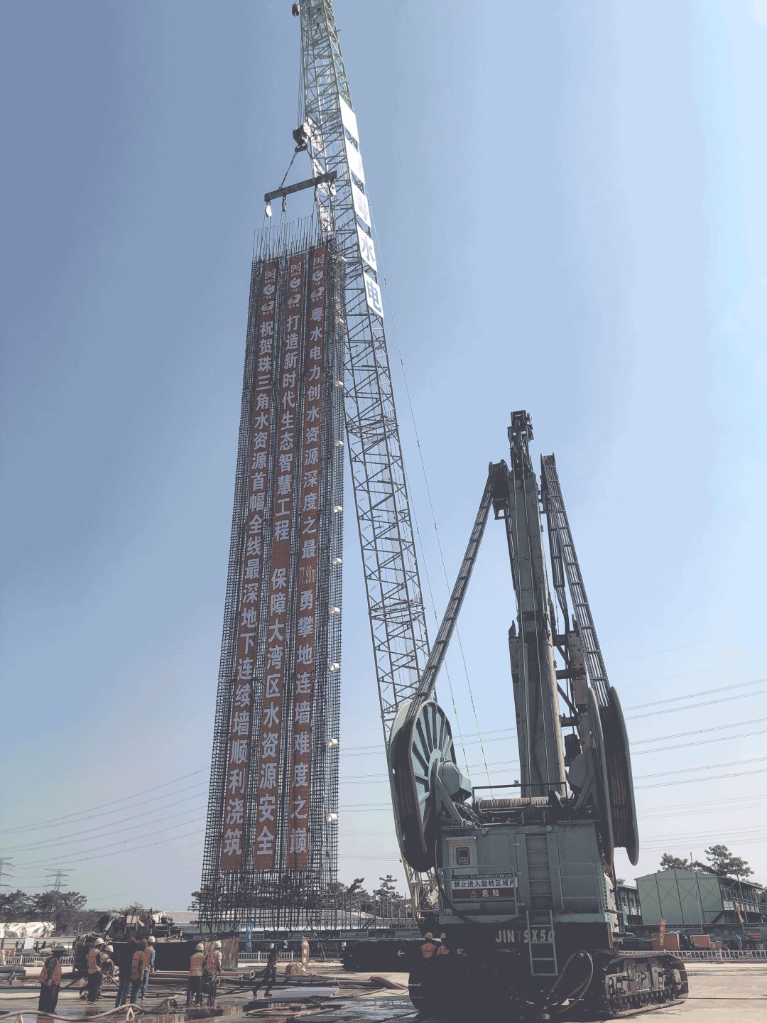 SX50双轮铣连续工作78天,超预期完成了25幅宽1.2m、深75m至78m的地连墙槽段,为广东水电二局创下超深地连墙记录,也为珠三角水资源配置工程树立标杆。
