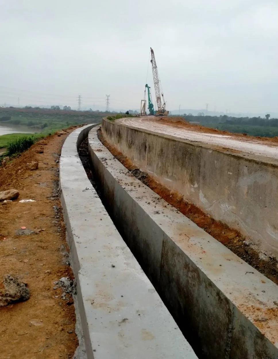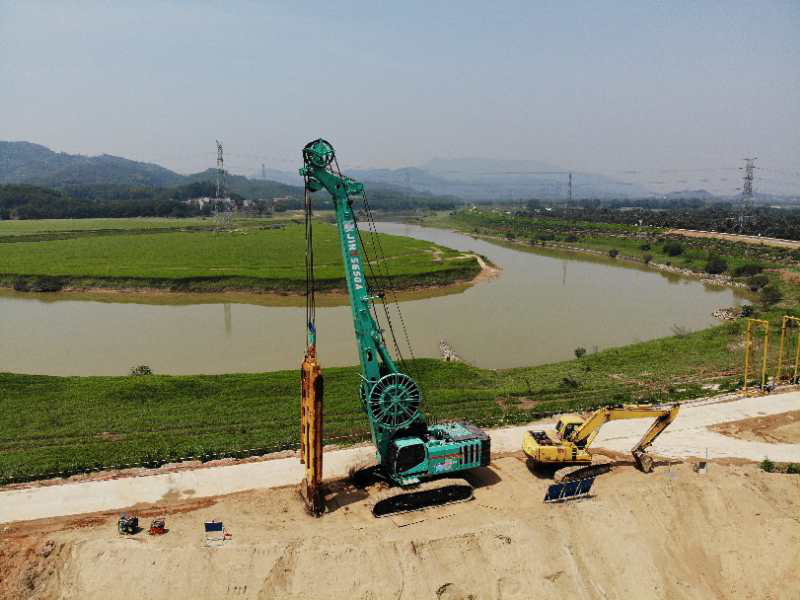 据广州峻业公司王经理介绍,“本项目施工最大难点在于堤围顶部宽度仅约5米难以满足设备施工需求,同时标段施工现场内有3条高压线及1条低压线影响工程施工。