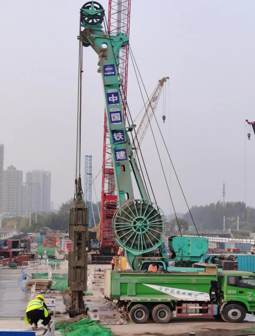 该站点铁路核心区最大埋深约 32.9米,西咽喉最深约45米,地下总建筑面积约 128万平方米,出土量将达到 1300万立方米,相当于七个北京昆明湖那么大。开工至今,20台金泰SG系列液压连续墙抓斗均在项目中表现突出,已然成为该项目地连墙施工主要输出设备,同时,45m深,1.2m厚的槽单爪平均用时8小时,也取得成槽机综合施工第一的好成绩。