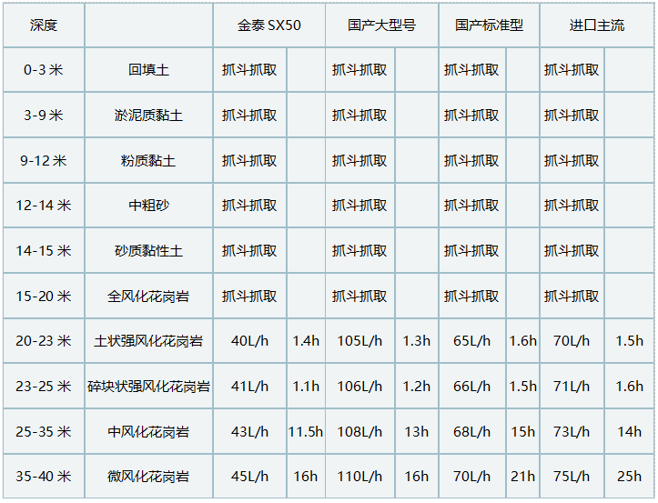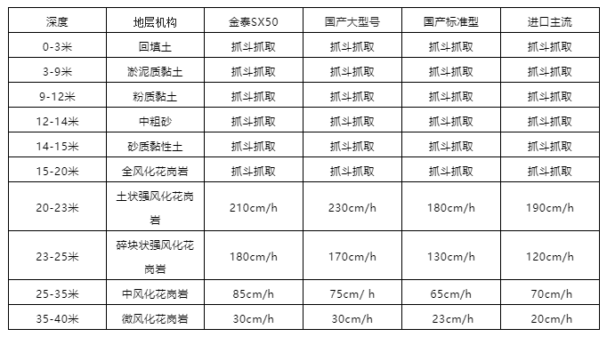 金泰SX50双轮铣施工效率比进口主流双轮铣、国产标准型双轮铣快30﹪以上;比国产大型号双轮铣施工效率快5﹪左右。