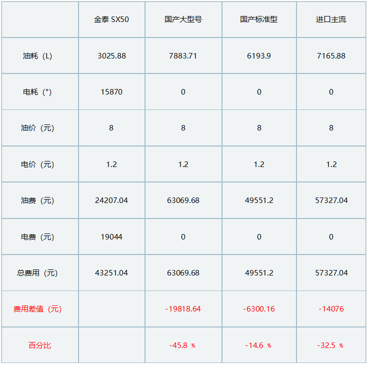 金泰SX50双轮铣在“油价”相较稳定的情况下油费比同类产品平均省30%以上,若油价越贵则差值更大,而且环保优势明显。