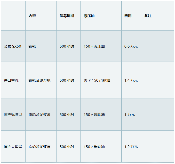 日常保养各个厂家、各个机型基本上差不多,主要铣轮箱体的油污染、温升等情况以及刀盘、刀头磨损情况。保养周期一般一周左右;费用一般1000元左右。