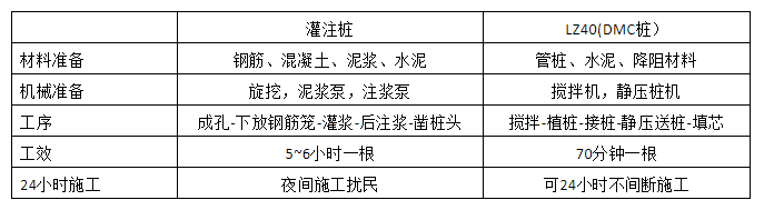 • LZ40深层搅拌钻机+静压桩机一天可完成10根桩的施工;