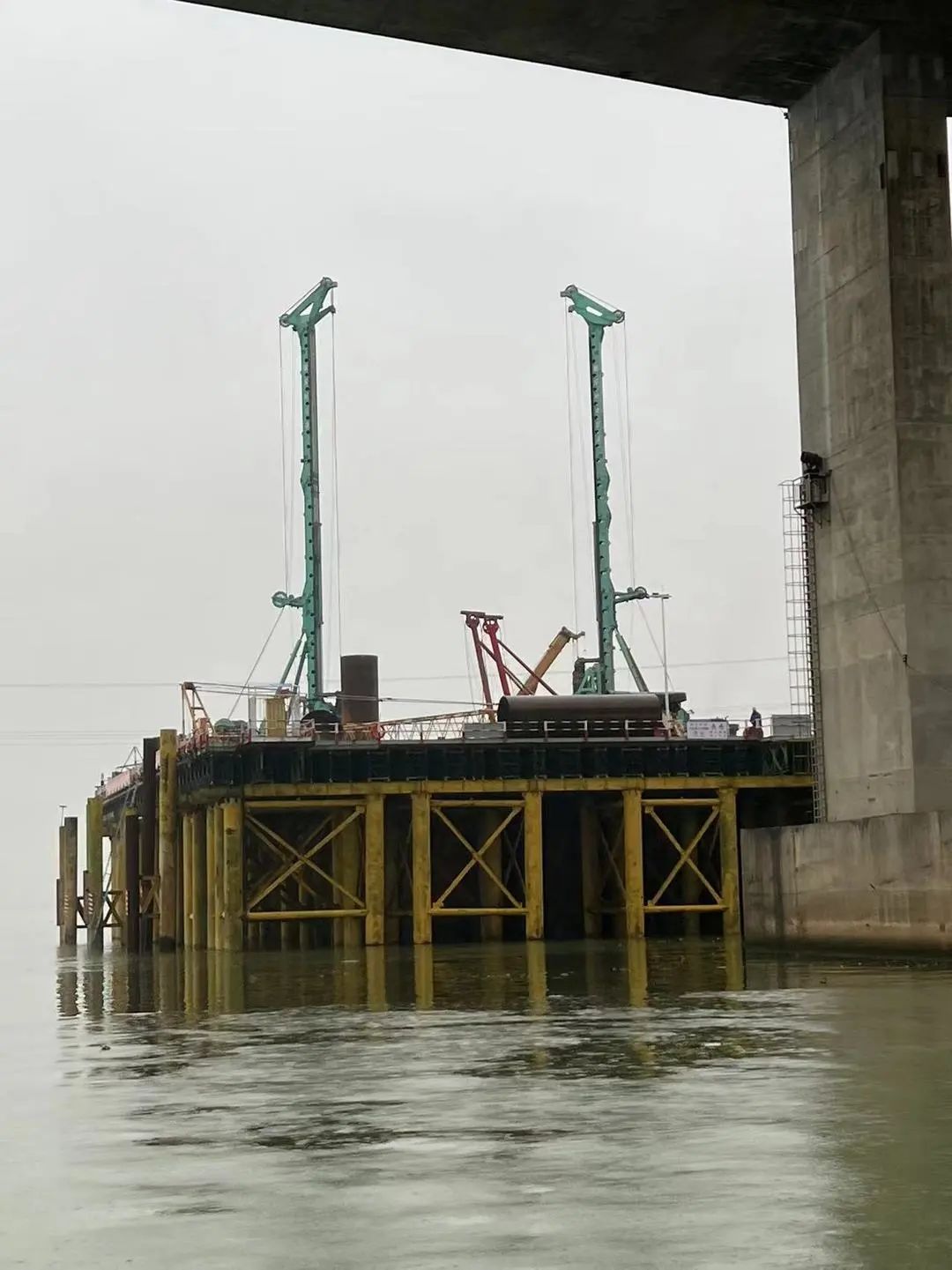 据悉,佛山特大桥工程位于莞佛高速,富湾特大桥北侧江面承台上施工。承台为地桩承台,尺寸为19.15*30.7*4m,采用双壁钢围堰施工,该承台围堰的同时也作承台模板使用,高度41m。