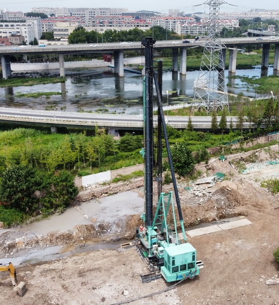金泰CSM工法是一款结合了液压铣槽机技术和深层搅拌技术的创新型双轮搅拌钻机。自问世以来,已在国内长三角、中南沿江、珠三角、以及山东、黑龙江等20多个省市近400多个项目工程得到充分验证并吸取施工经验,从而研发了旋挖钻机式、电液履带式、电液步履式三种主机平台,可覆盖20m到65m深度,可应对密致砂层、大粒径卵石层、以及10兆帕以内的软岩地层的系列SC产品集群。又因CSM工法可对原墙体进行完全的铣削,对不规则轮廓的适应性更强,相对环保,设备稳定性强,施工效率高等特性为后期基坑开挖提供了有力的保障。